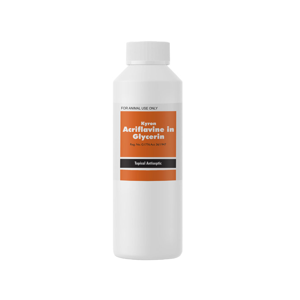 Acriflavine in glycerin solution can be applied into the wound as an alternative if proper irrigation is not possible, because it promotes wound drainage and has a hygroscopic action which may reduce local swelling when applied with well-padded bandages. The wounds are left unsutured to provide adequate drainage. Daily bandage changes are required. Usually for the first 5- 8 days. The use of an Acriflavine in Glycerin compound in the management of contaminated and infected wounds has stood the test of time in general veterinary practices over five decades. Acriflavine in Glycerin enhances the wound drainage due to